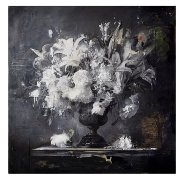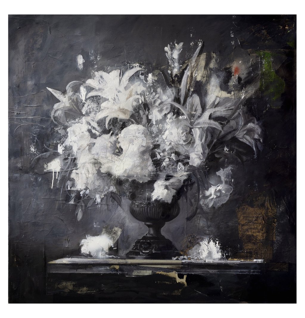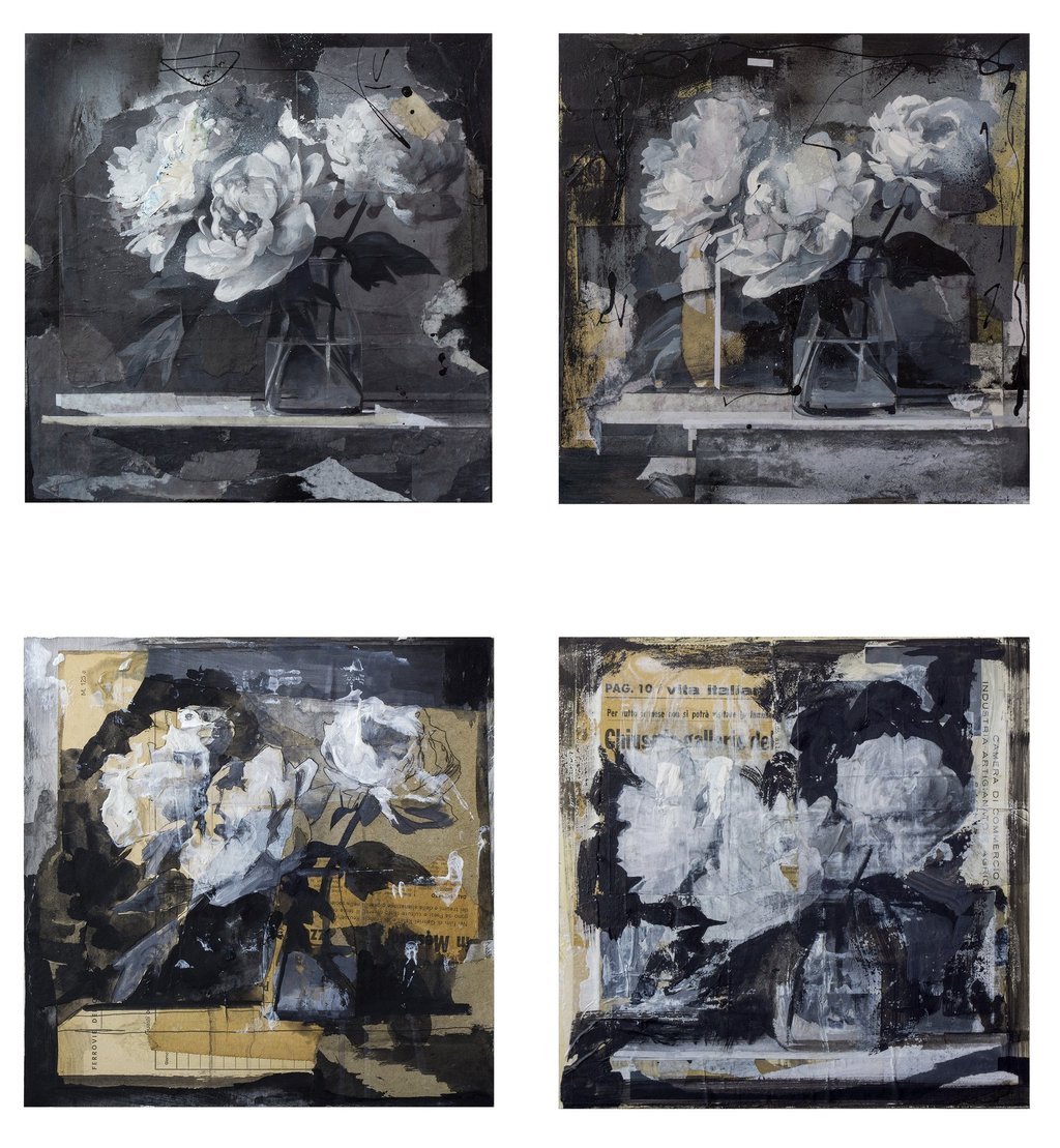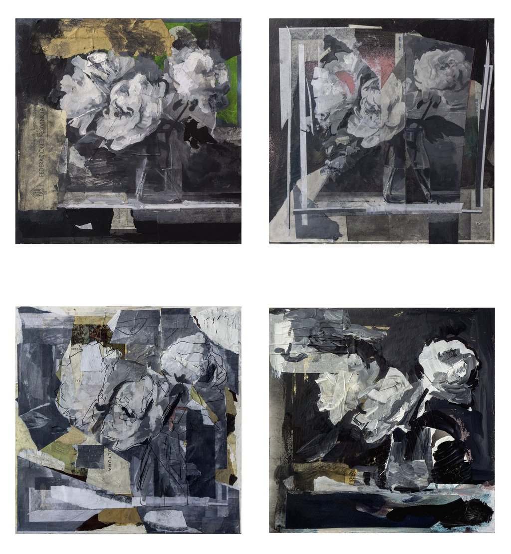 Se un tempo era l’insetto a rendere “vero” il vaso di fiori, oggi sono la macchia, il segno, il gesto a riattivare un’esperienza sensibile del visibile. Come un lapsus, la pittura rivela la verità proprio nell’istante in cui devia, inciampa, tradisce l’intenzione: è lì che cade la censura sull’inconscio. In queste opere, il fiore è apparenza instabile: frammento, scarto, materia ricomposta. L’immagine non si ripete mai identica, ma si trasforma — come in un telefono senza fili — in cui ogni variazione riscrive, altera, distorce. La realtà non viene riprodotta, ma riformulata.